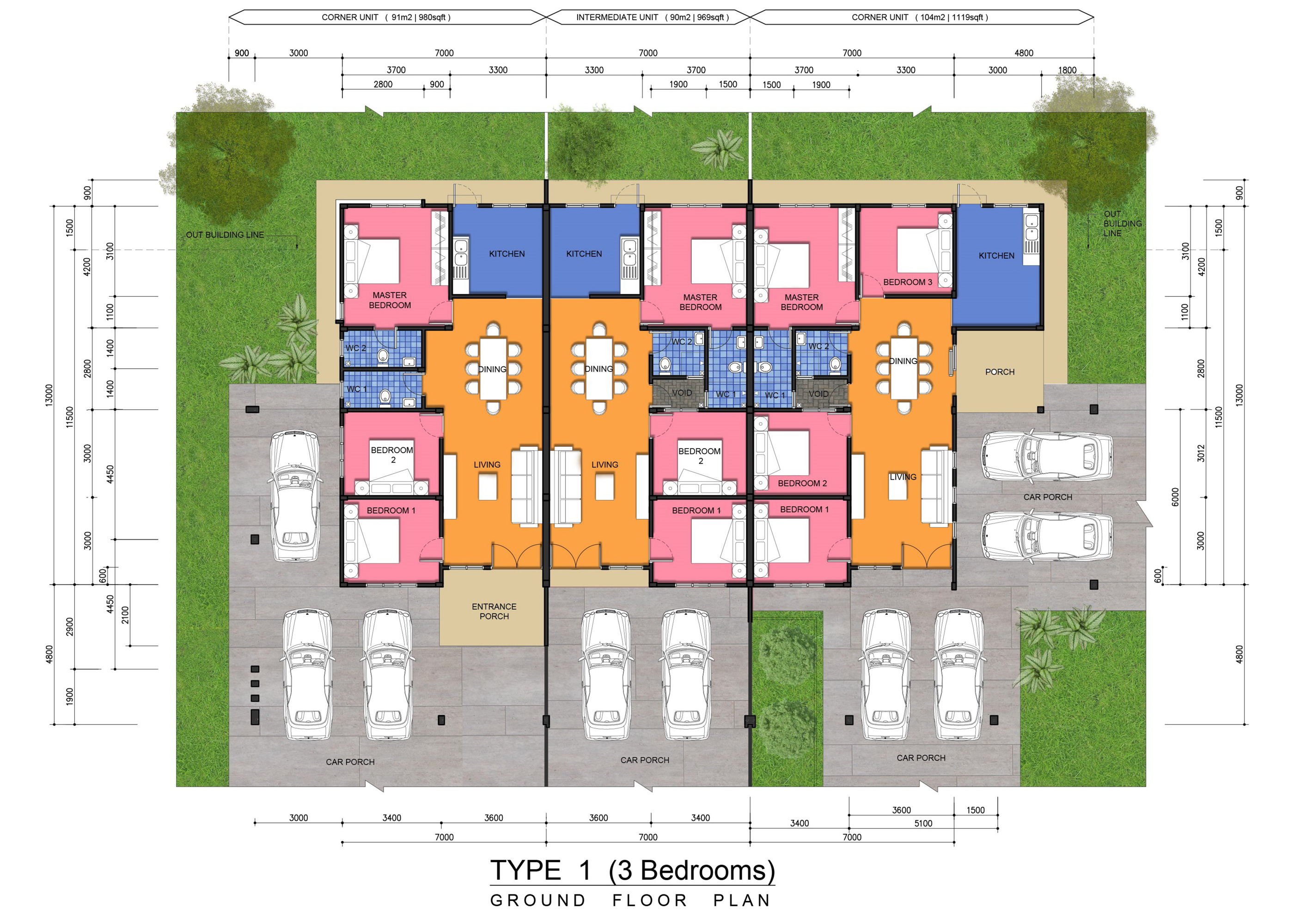 Steel door frames with engineering timber for main door, side, kitchen and all the Bedrooms’ doors